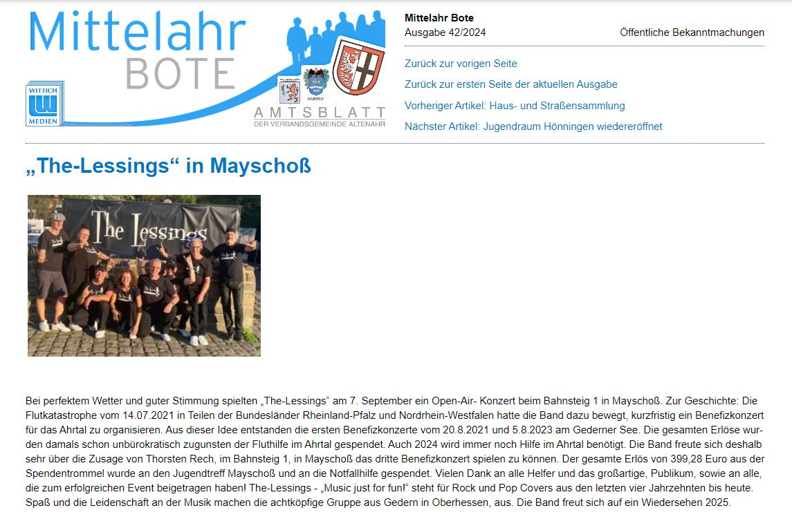 Wir freuen uns in diesem Jahr im Ahrtal spielen zu können und hoffen auf zahlreiche Spenden !